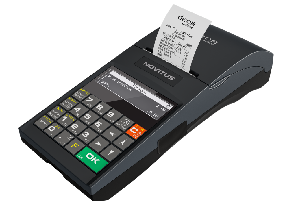 Jest to jedna z najbardziej ergonomicznych drukarek fiskalnych w ofercie NOVITUS, która jednocześnie obsługuje komunikację z Centralnym Repozytorium Kas (CRK), zgodnie z wymogami Rozporządzenia Ministra Przedsiębiorczości i Technologii z dnia 28 maja 2018 r. w sprawie kryteriów i warunków technicznych, którym muszą odpowiadać urządzenia fiskalne rejestrujące.